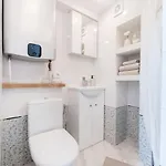 Eine Sitzecke, die mit einem Sofa und einem Schreibtisch ausgestattet sind, stehen Gästen bei einem Aufenthalt in der Ferienwohnung Warm And Light Loft Near Vilnius Centre zur Verfügung. Das Apartment verfügt über 1 Schlafzimmer. Hier gibt es 1 Bad mit einer getrennten Toilette und einer Dusche. Des Weiterem gibt es einen Haartrockner und Handtücher im Badezimmer.